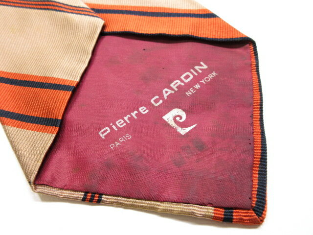 【ピエールカルダン pierrecardin】大剣大きめ レジメン柄 ネクタイ (メンズ) ライトブラウン系×オレンジ系 ■12MM7760■【中古】