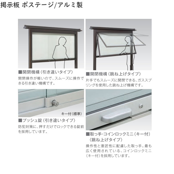 掲示板 アルミ製 引違いタイプ 自立 PKA-H+大型和風屋根:屋根W=2600mm[幅1696mm×高1093mm]