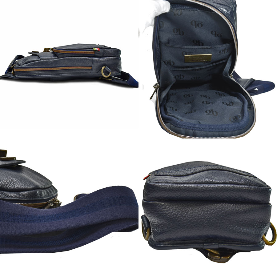 オロビアンコ Orobianco バッグ ネイビーxメタリックゴールド レザーxナイロンキャンバスx金属素材 ショルダーバッグ ボディバッグ メンズ 値下げ商品【中古】【定番人気】 - 53672a