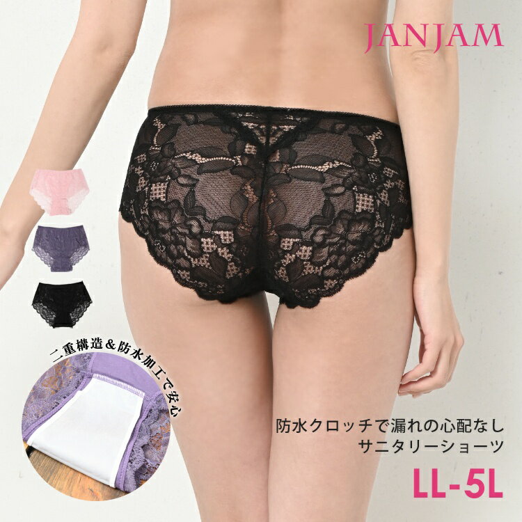 メール便対応 大きいサイズ レディース サニタリーショーツ 透け感 総レース 股上深め 防水クロッチ インナー 下着 LL/3L/4L/5L ゆったりサイズ ぽっちゃり女子 プラスサイズ