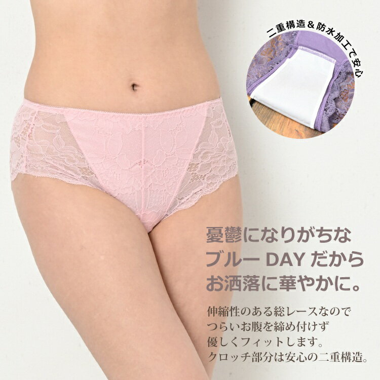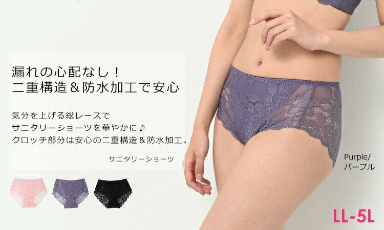 大きいサイズ レディース インナー サニタリーショーツ レースショーツ 生理用 下着 防水加工布 防水クロッチ 月経用 生理用パンツ 生理用ショーツ ランジェリー パンティー サニタリーパンツ フロントV字 ヒップ立体設計 ヒップギャザー 羽根つき対応 かわいい おしゃれ 大人用 女性用 カジュアル フェミニン セクシー ストレッチ素材 伸縮 よく伸びる 透けない 苦しくない 締めつけない 股上深め 深ばき 肌触り良し 女性下着 婦人下着 大人 きれいめ シンプル 普段使い デイリー 30代 40代 50代 春 夏 秋 冬 オールシーズン 黒 紫 桃色 LL 3L 4L 5L sfy-all-inst0010クロッチ部分は安心の二重構造&防水加工のサニタリーショーツ。