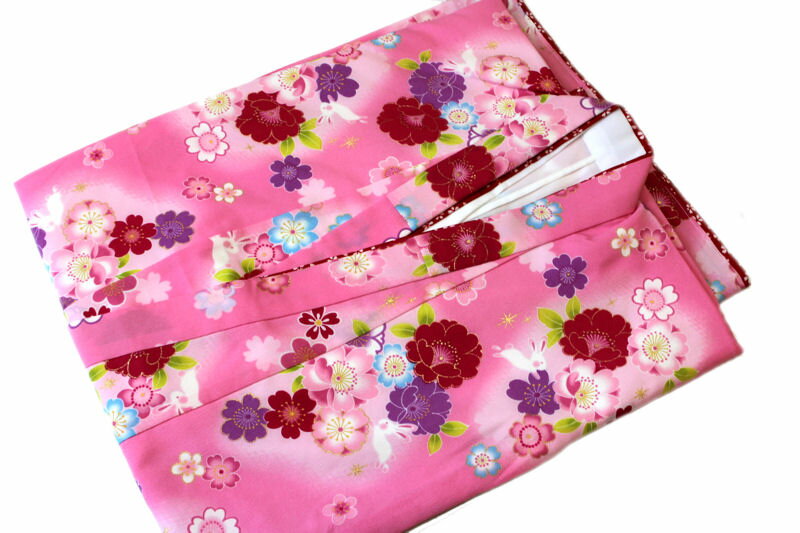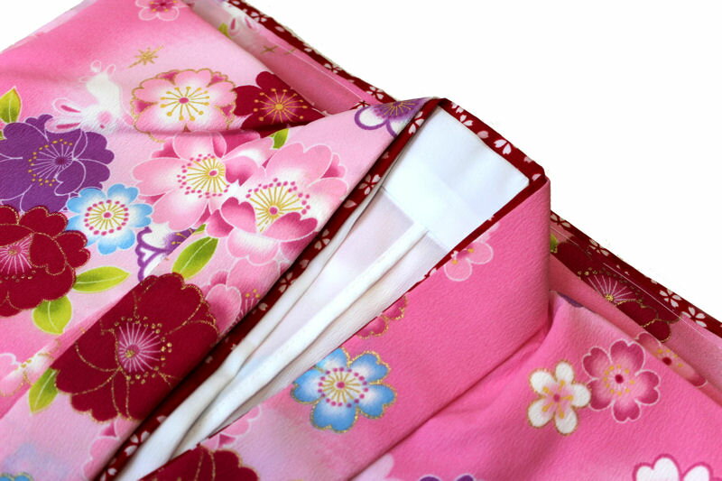 三歳女の子の着物-No.003【地色:ピンク色/三ッ身・着物と襦袢のセット・送料無料/身長95センチから105センチ】