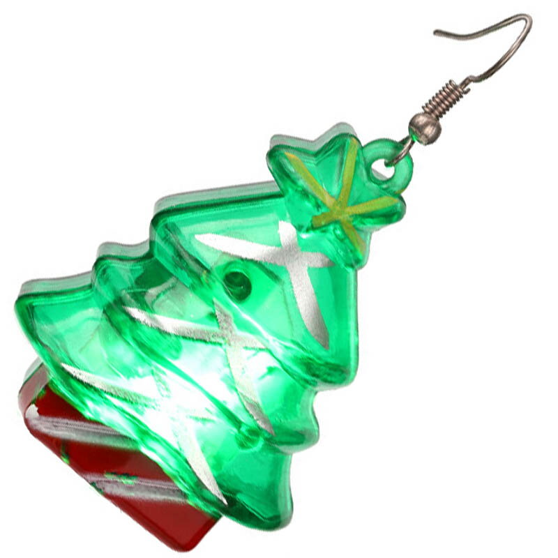 クリスマスイベントや、クリスマス会にぴったりのLEDで光るクリスマスツリーが揺れるステンレスピアス。