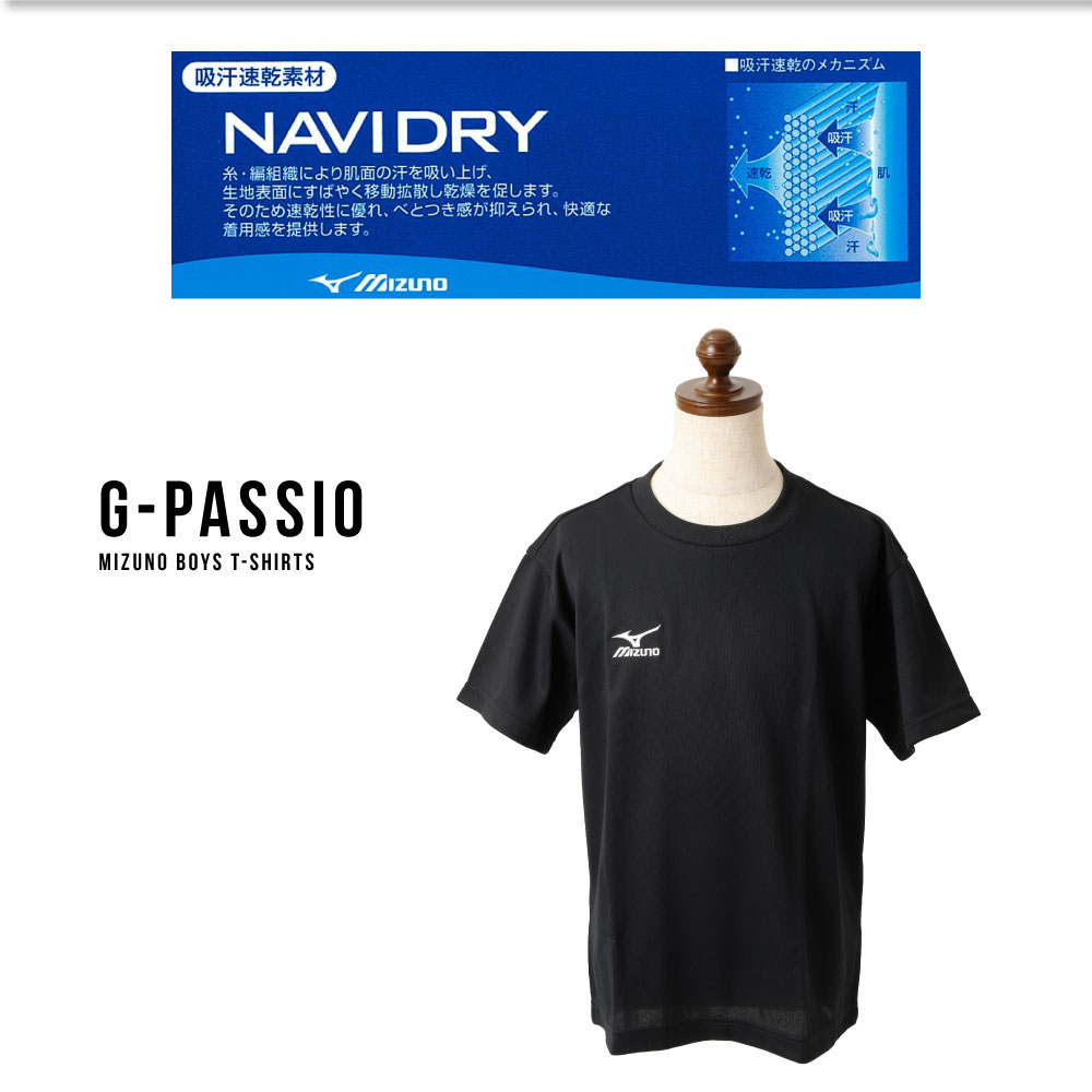 生地の伸縮性 あり 生地の透け感 ややあり 生地の厚み 普通 MIZUNO NAVI DRY クルーネックでシンプルな胸の刺繍。
