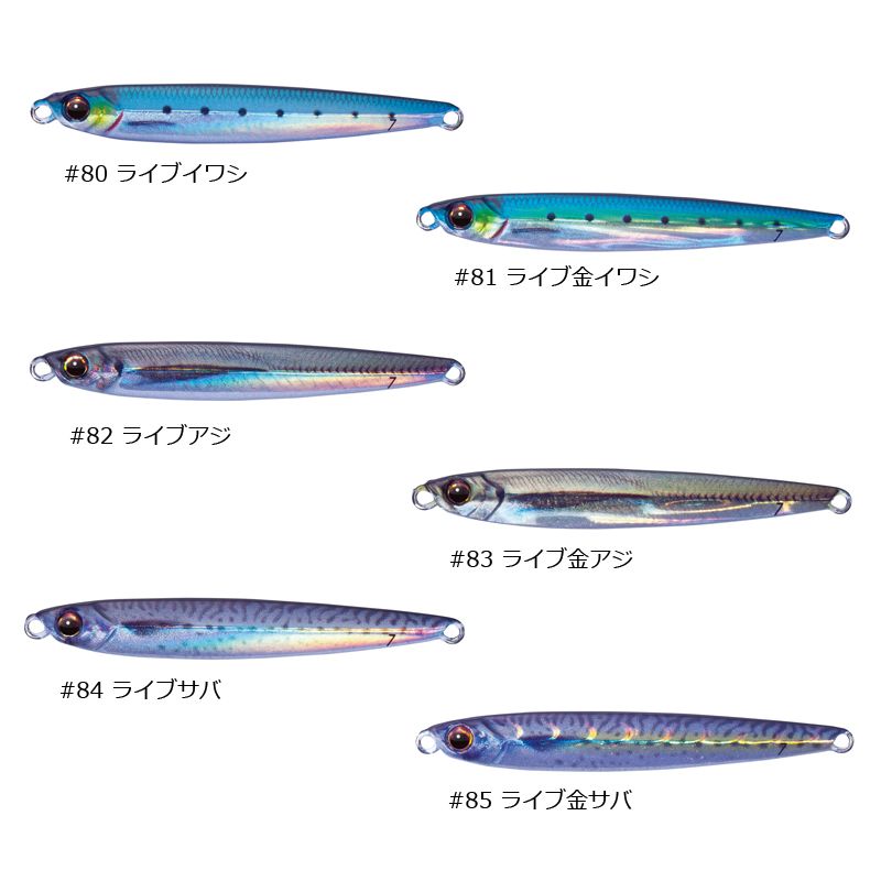 仕様表【ジグパラマイクロも息を吹き込まれた小魚になって登場!!】ライトゲームにマイクロジグのブームを巻き起こしたジグパラマイクロが、生命を吹き込まれたライブベイトカラーとなって登場です。