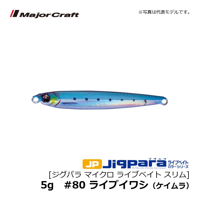 ○リアトレブルフック付※7g以上はアシストフック付【スペック】・製品名::ジグパラ マイクロ ライブベイト スリム・サイズ (g):5・カラー:#80 ライブイワシ(ケイムラ)詳細はこちら