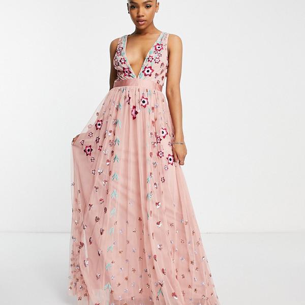 Angel R エンジェルアール ドレス キャバ ドレス キャバドレス エンジェル アール ドレス ボーダーレースウェディングドレス ロングドレス 花柄刺繍 フレア Aライン ビジュー フラワー刺繍 ブライダル ネイビー/ピンク Sサイズ AR7318 詳しく見る